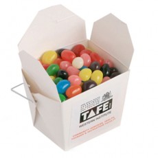 White Cardboard Noodle Box filled with Jelly Beans 100g