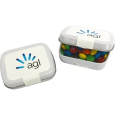 Small Rectangle Hinge Tin filled with 30g Mini M&Ms